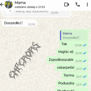 Okładka utworu przedstawia zrzut ekranu z autentycznej rozmowy na WhatsApp między Pawłem a jego mamą. Widoczna lista rzeczy – z charakterystycznym „majtki x6” – idealnie oddaje genezę i klimat piosenki.